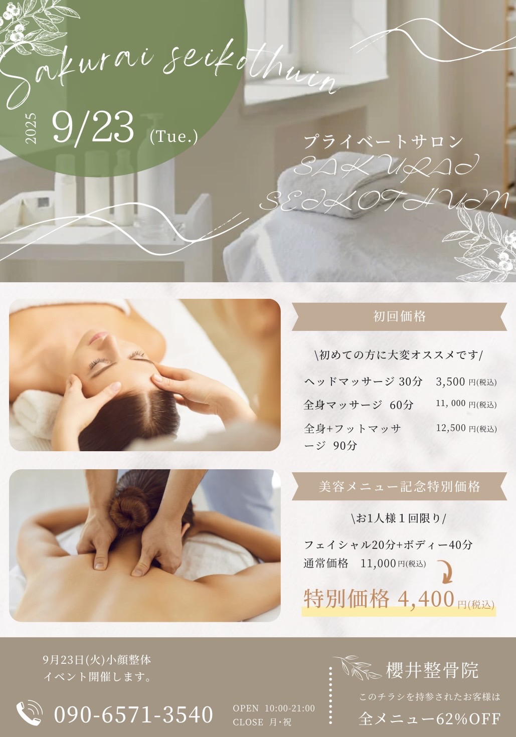 【9月23日】「無料小顔調整」イベント開催します!
